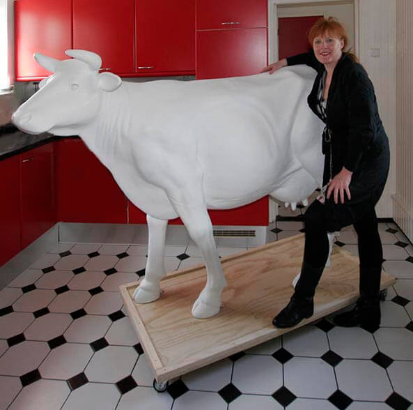 AN ART COW FOR CONO KAAS: In 2012 the Beemster existed 400 years. That was extensively celebrated with all kinds of activities. CONO gave the command to eleven 'Noordhollandse' artists to make a happy cow. Katinka Krijgsman: "it was clear to me that the elements of 400 years Beemster there in had to be processed. Originally there was fishing, so from seafood to cow was a logical step. The scales are made flesh and dry feet were also important, therefore, wooden shoes and woolen socks. Beasts to be pampered and cultivated, hence the millstone collar and small hat. Keep the udders of naturally ... naturally."