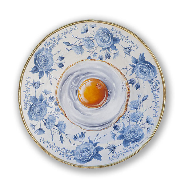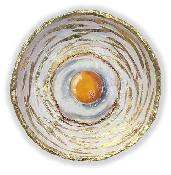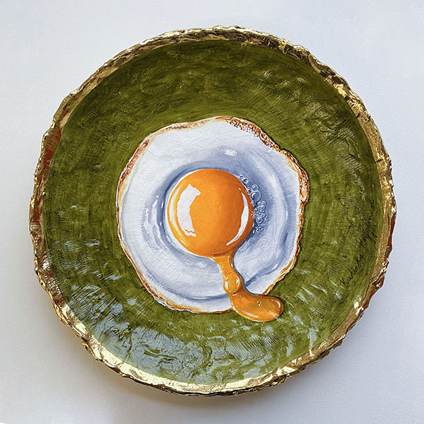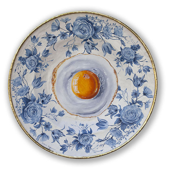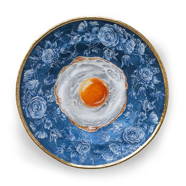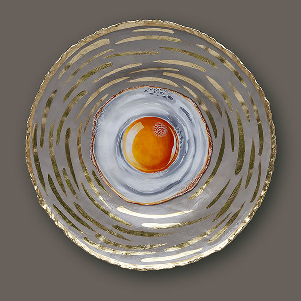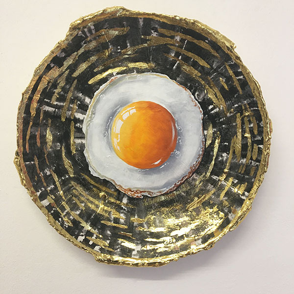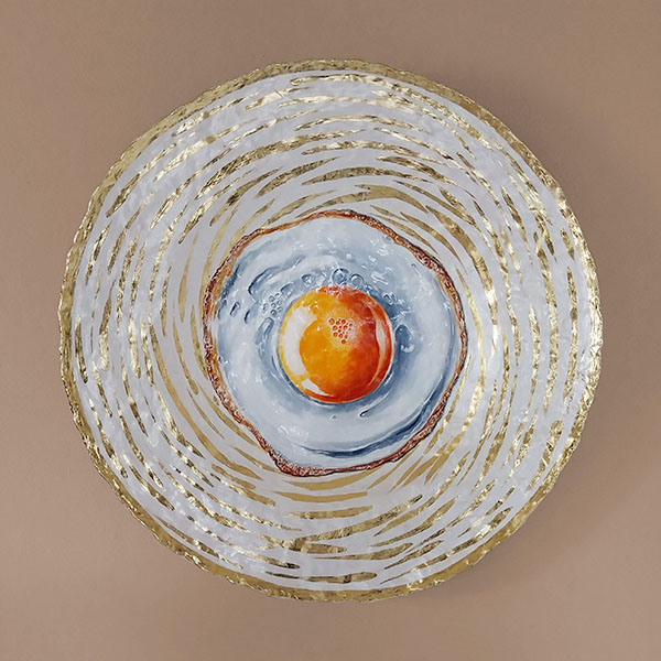 Fried egg | Oil paint and 24 carat gold leaf on handmade plate | 92x92x9cm | SOLD