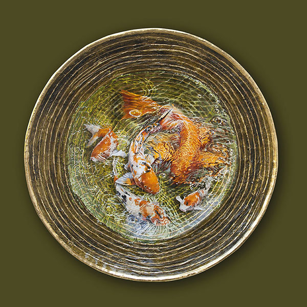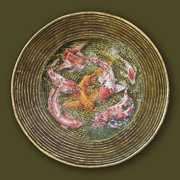 Small fishflower | Oil paint and 24 carat gold leaf on handmade plate | 40x40x6cm | SOLD