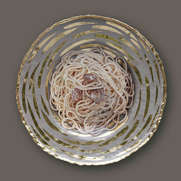Pici Vongole | Oil paint and 24 carat gold leaf on handmade plate | 75x75x8cm
