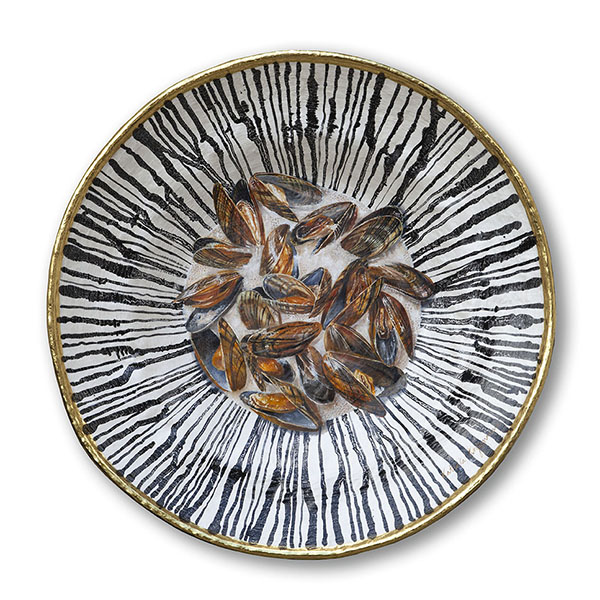 Moules Marinière| Oil paint and 24 carat gold leaf on handmade plate | 75x75x9 cm |