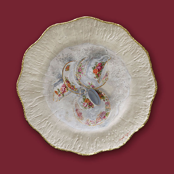 De afwas | Oil paint and goldleaf on handmade plate | 75x75x8 cm |