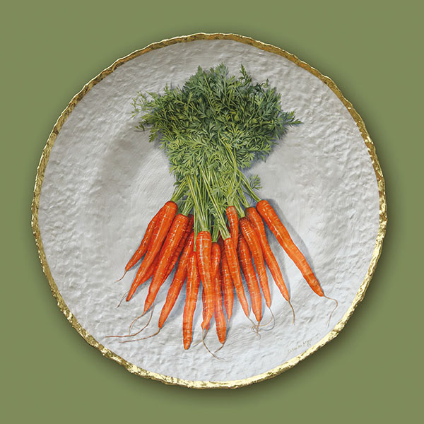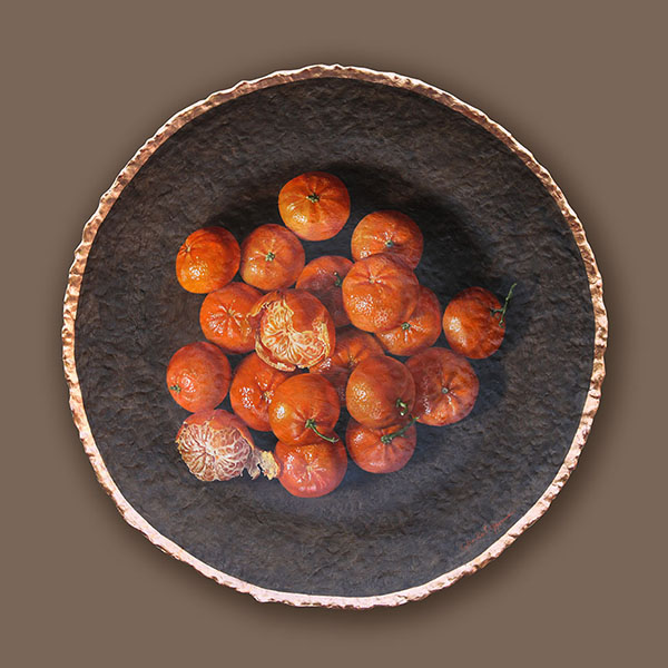 Mandarijnen op van Dijckbruin | Oil paint and goldleaf on handmade plate | 75x75x8 cm |