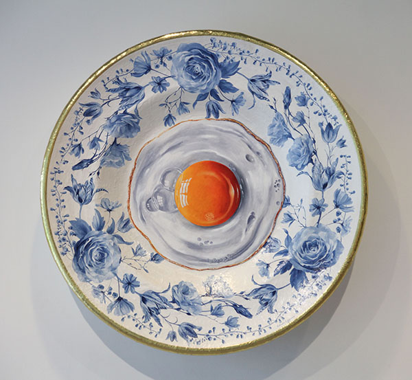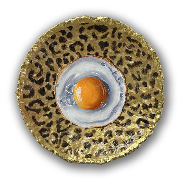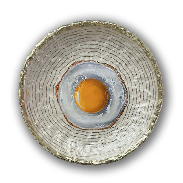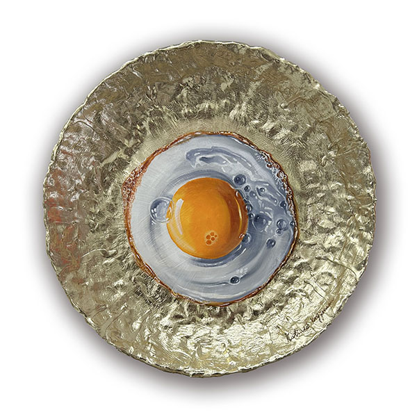 Champagne eitje | Oil paint and goldleaf on handmade plate | 40x40x6 cm |