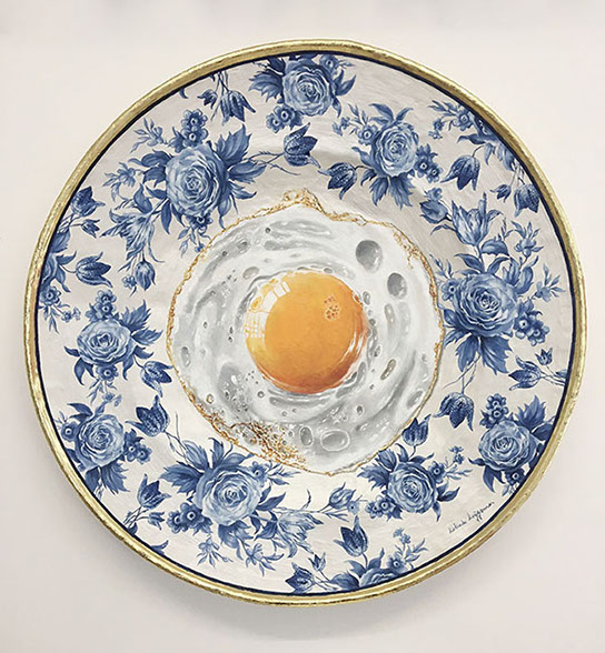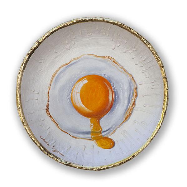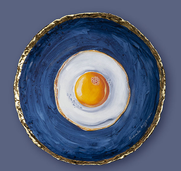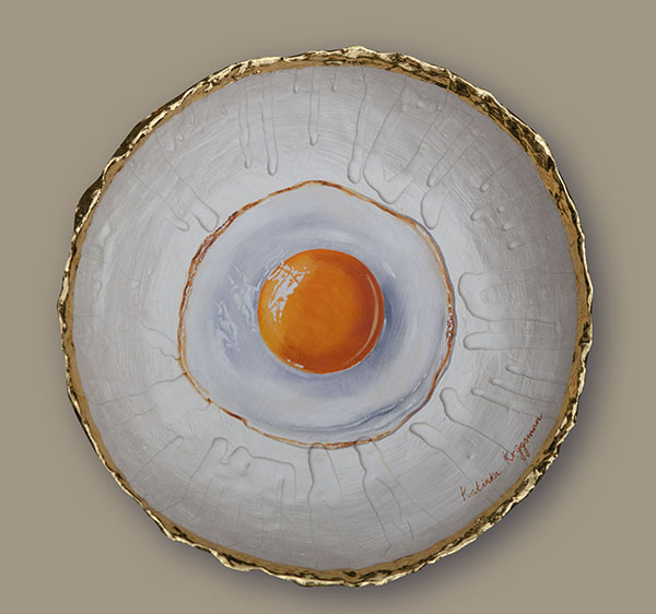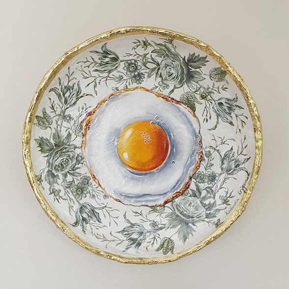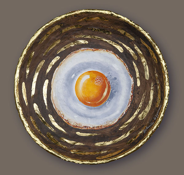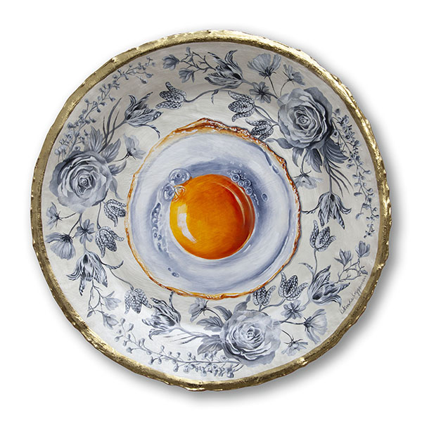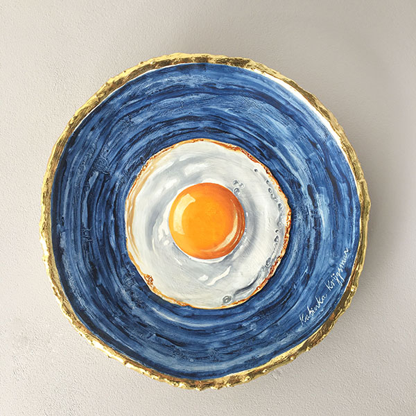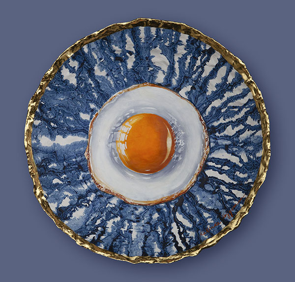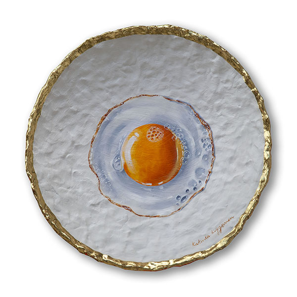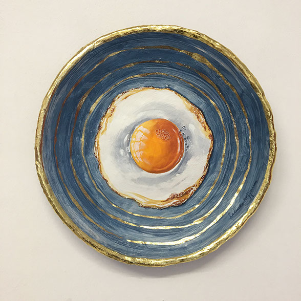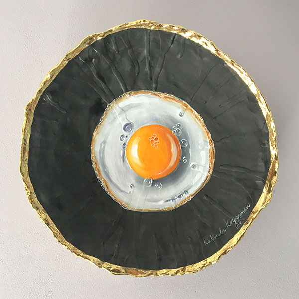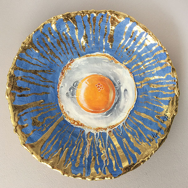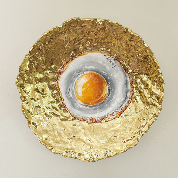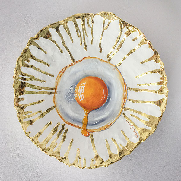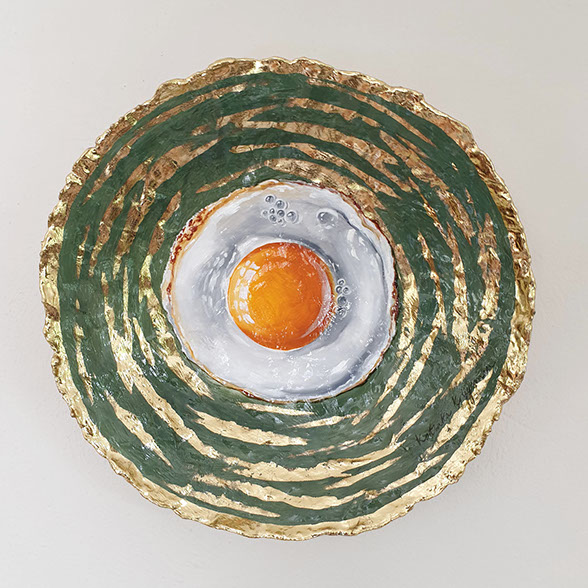 Fried egg | Oil paint and 24 carat gold leaf on handmade plate | 92x92x9cm | SOLD
