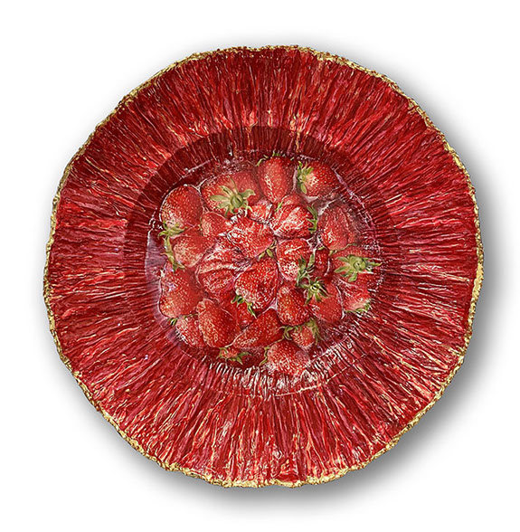 Strawberry jelly | Oil paint and 24 carat gold leaf on handmade plate | 90x90x18 cm |