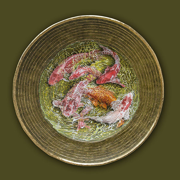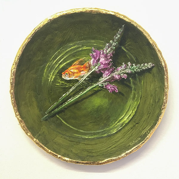 Small fishflower | Oil paint and 24 carat gold leaf on handmade plate | 40x40x6cm | SOLD