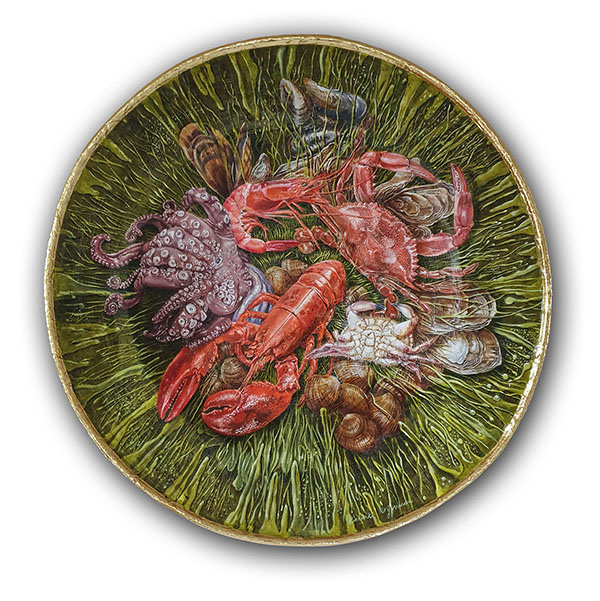 Zeevruchten | Oil paint and 24 carat gold leaf on handmade plate | 92x92x9cm | SOLD