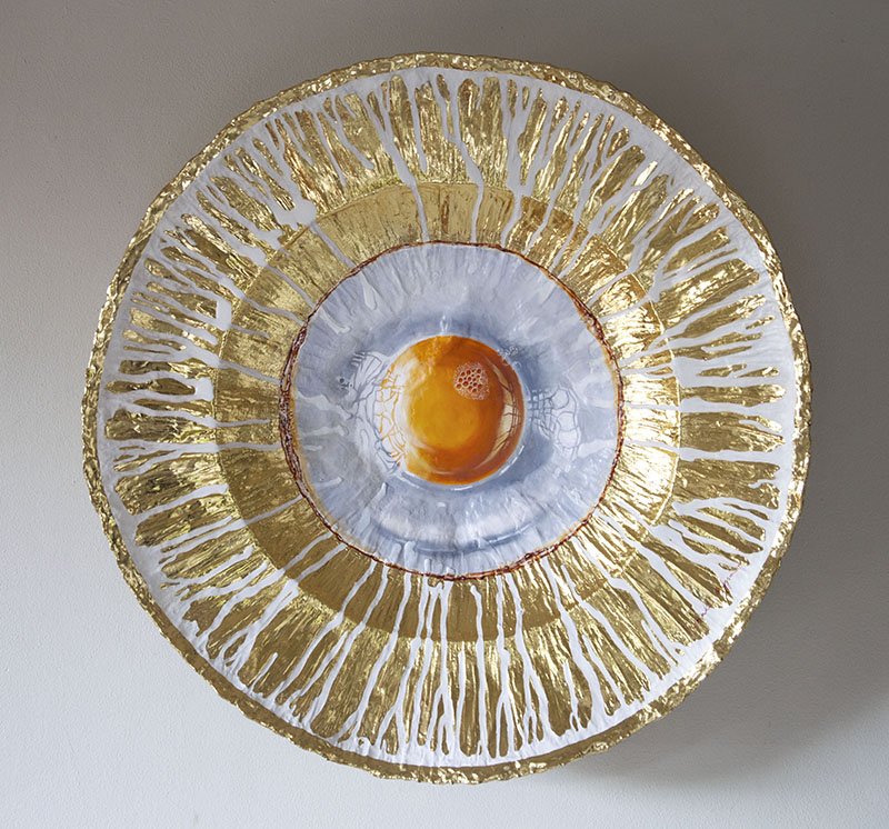 Sunny | Oil paint and 24 carat gold leaf on handmade plate | 90x90x17cm |