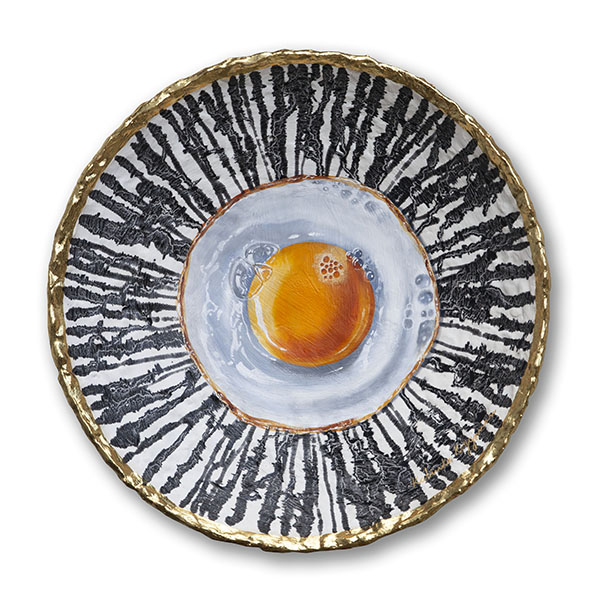 ei op zwart wit 9-05 | Oil paint and 24 carat gold leaf on handmade plate | 44x44x8 cm |